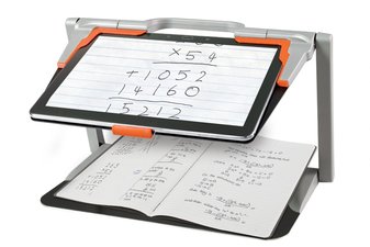Den kommer i ett stativ som fungerer både som til å lese og skanne, samt beskytter apparatet når det er lagt sammen.
